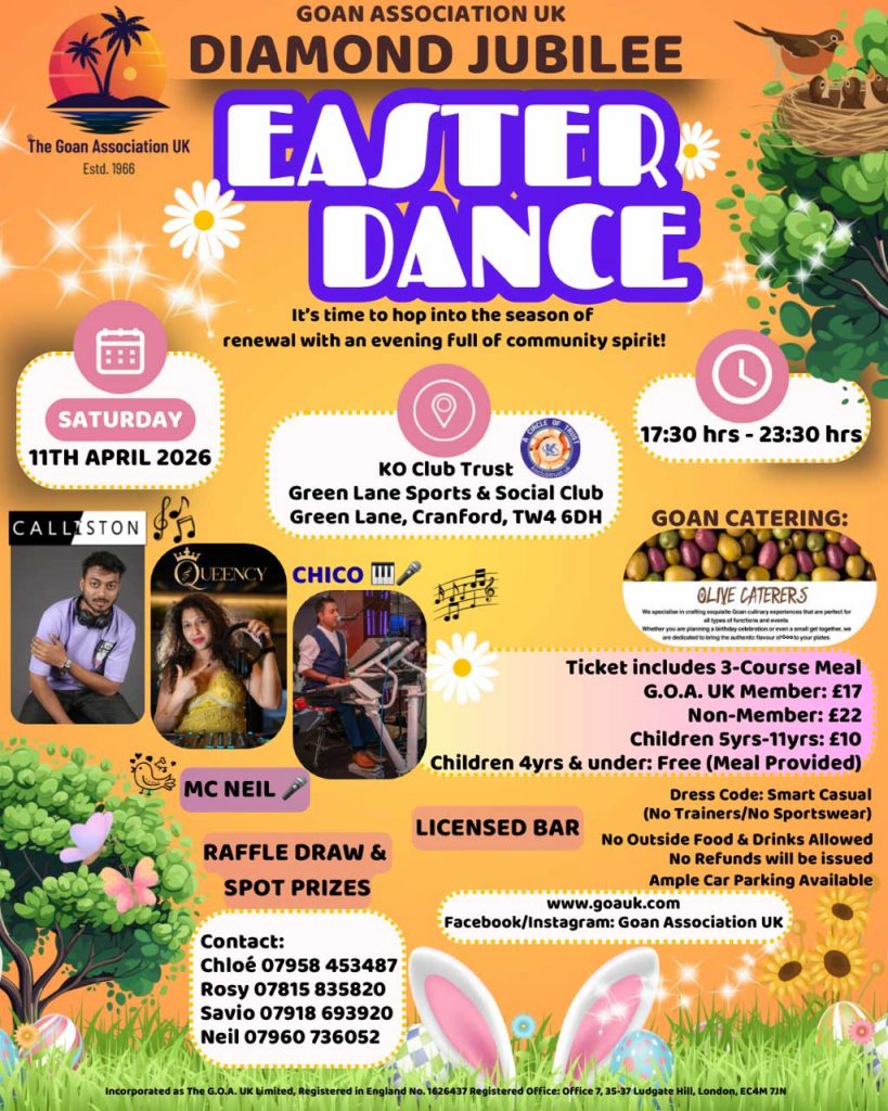 The Goan Association (UK) is a voluntary organisation founded in 1966 and incorporated as The G.O.A (UK) Ltd in 1983.