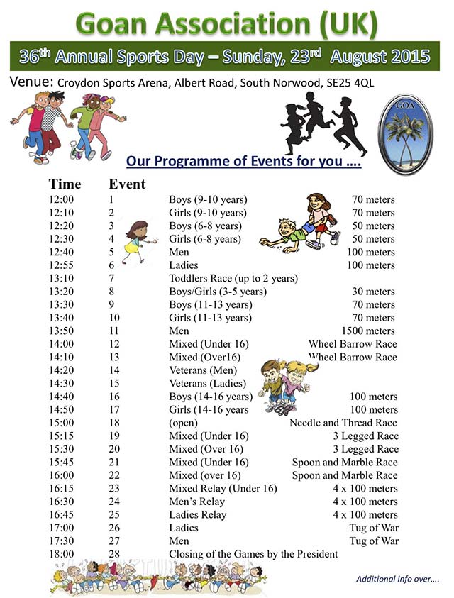 23rd August 2015 – GOAN Association Sports Day – Croydon Sports Arena