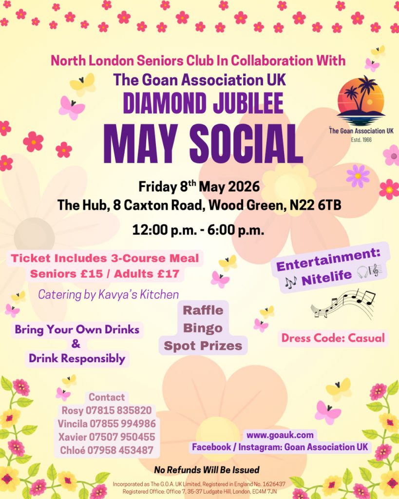 The Goan Association (UK) is a voluntary organisation founded in 1966 and incorporated as The G.O.A (UK) Ltd in 1983.